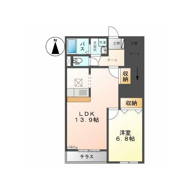 | 間取り | 1LDK(LDK13.9、洋6.7) | 主要採光面 | 南 |
