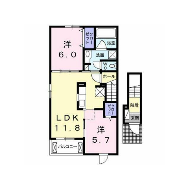 | 間取り | 2LDK(洋5.7、洋6、LDK11.8) | 主要採光面 | 南 |