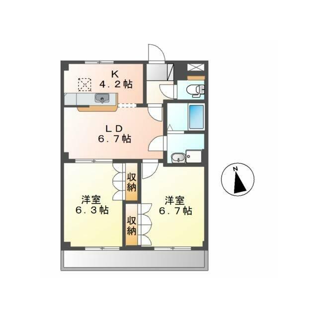| 間取り | 2LDK(洋6.3、洋6.7、LDK10.9) | 主要採光面 | 南 |