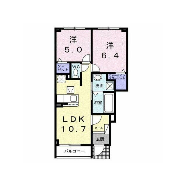 | 間取り | 2LDK(洋5、洋6.4、LDK10.7) | 主要採光面 | 南東 |