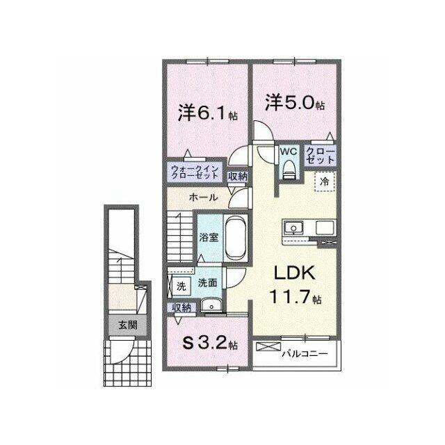 | 間取り | 2LDK(洋5、洋6.1、LDK11.7) | 主要採光面 | 南東 |
