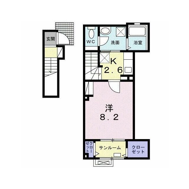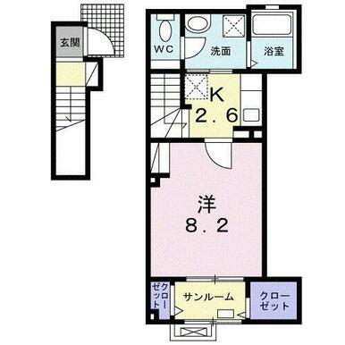 | 間取り | 1K(洋8.2、K2.6) | 主要採光面 | 南 |