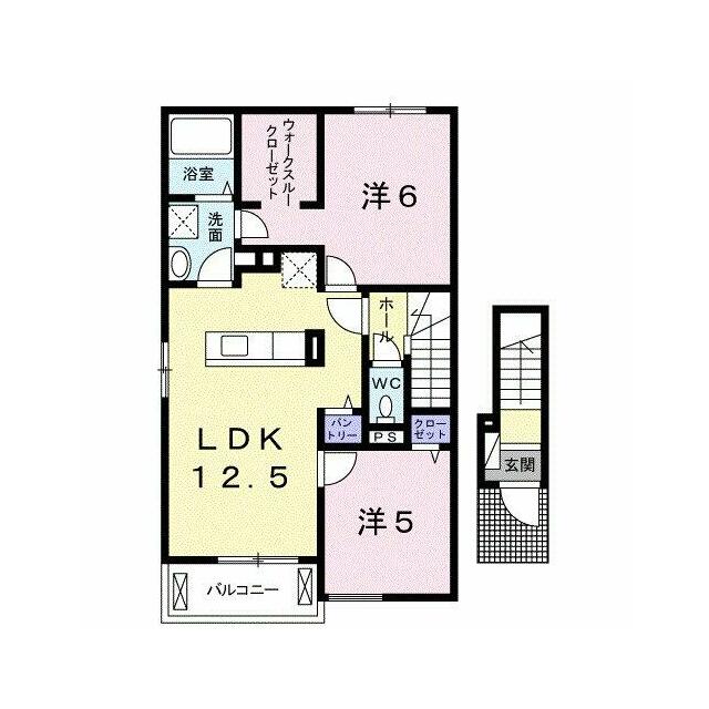 | 間取り | 2LDK(洋5、洋6、LDK12.5) | 主要採光面 | 南 |