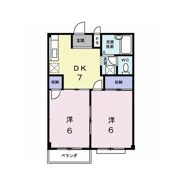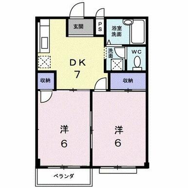 | 間取り | 2DK(洋6、洋6、DK7) | 主要採光面 | 南 |