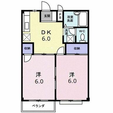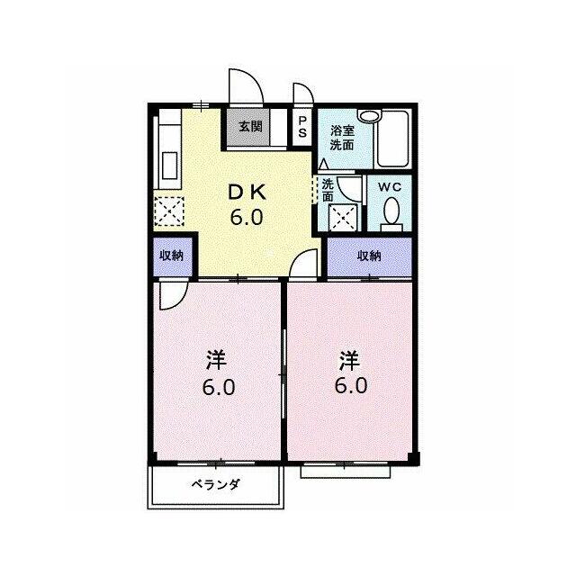 | 間取り | 2DK(洋6、洋6、DK6) | 主要採光面 | 南東 |
