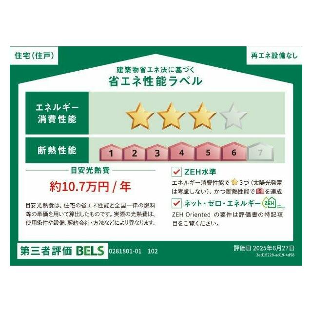 | エネルギー消費性能 | ★★★(削減率20%達成) | 断熱性能 | 6段階/7段階中 |