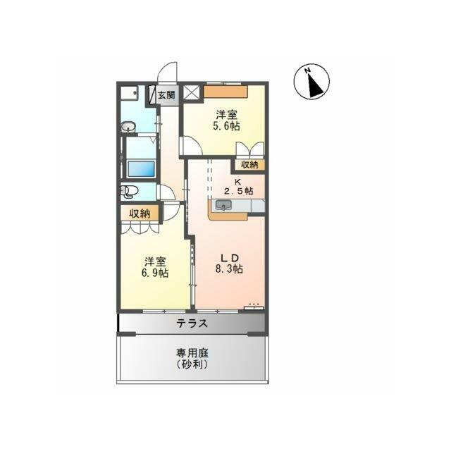 | 間取り | 2LDK(LDK10.8、洋6.9、洋5.6) | 主要採光面 | 南 |