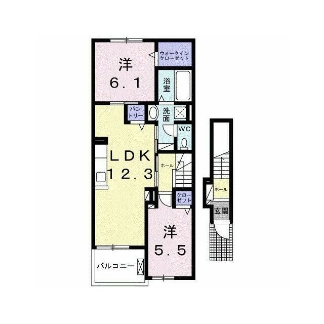 | 間取り | 2LDK(洋6.1、洋5.5、LDK12.3) | 主要採光面 | 南 |