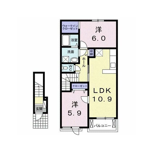 | 間取り | 2LDK(洋5.9、洋6、LDK10.9) | 主要採光面 | 南 |