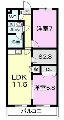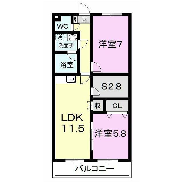 | 間取り | 2SLDK(LDK11.5、洋5.8、洋7、S2.8) | 主要採光面 | 南 |