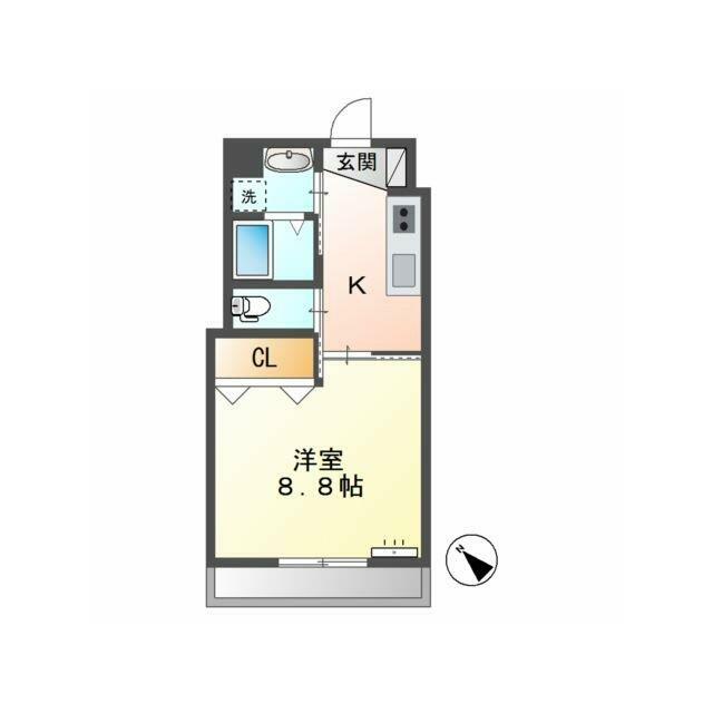 | 間取り | 1K(洋8.8) | 主要採光面 | 南 |