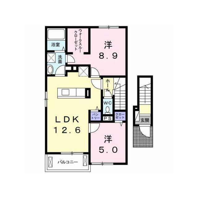 | 間取り | 2LDK(洋8.9、洋5、LDK12.6) | 主要採光面 | 南西 |