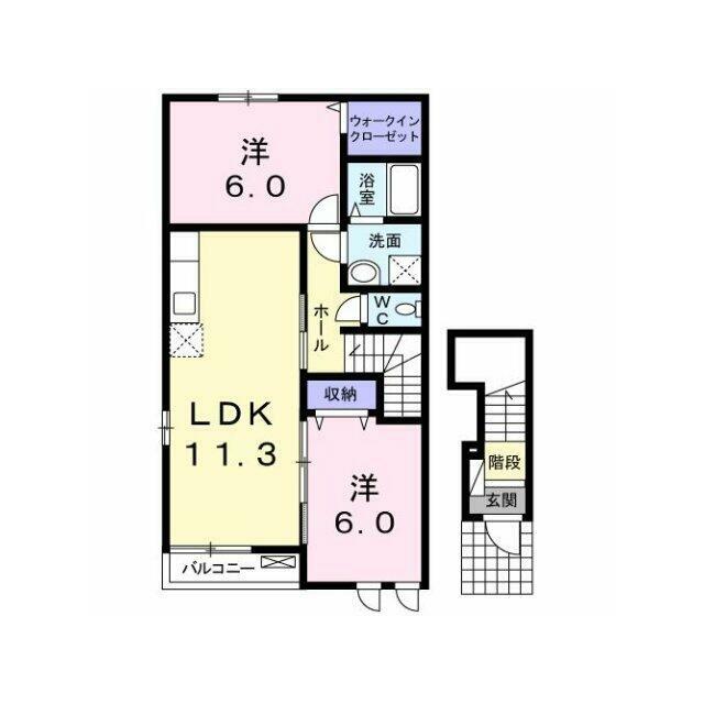 | 間取り | 2LDK(洋6、洋6、LDK11.3) | 主要採光面 | 南 |