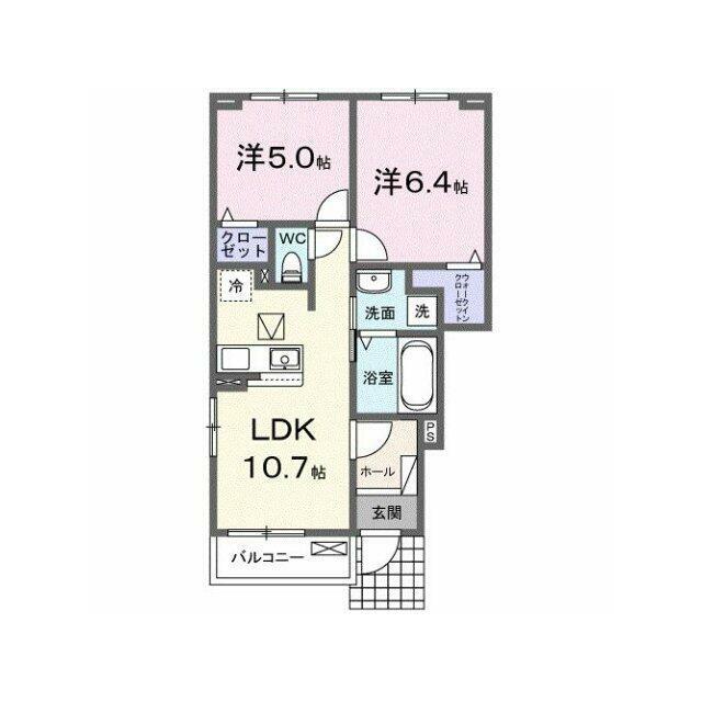 | 間取り | 2LDK(洋5、洋6.4、LDK10.7) | 主要採光面 | 南東 |