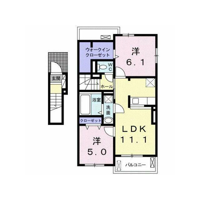| 間取り | 2LDK(洋5、洋6.1、LDK11.1) | 主要採光面 | 南西 |