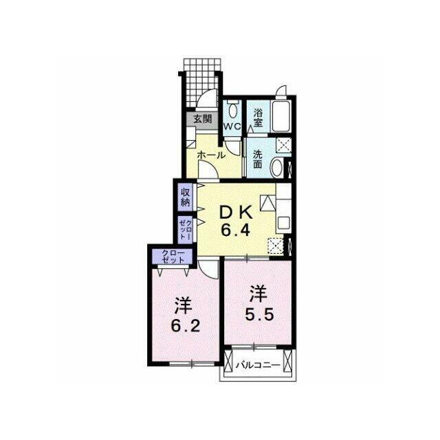 | 間取り | 2DK(洋6.2、洋5.5、DK6.4) | 主要採光面 | 南 |