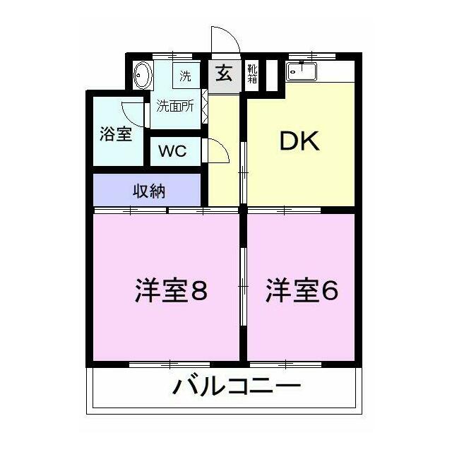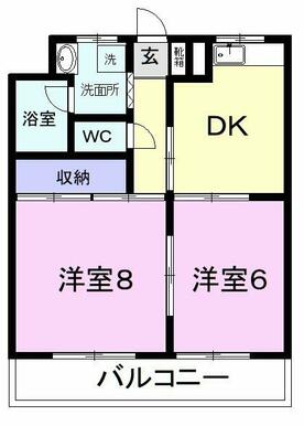 | 間取り | 2DK(DK6、洋6、洋8) | 主要採光面 | 南 |