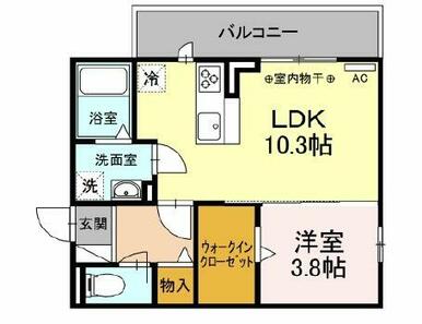 | 間取り | 1LDK(洋3.8、LDK10.3) | 主要採光面 | 北東 |