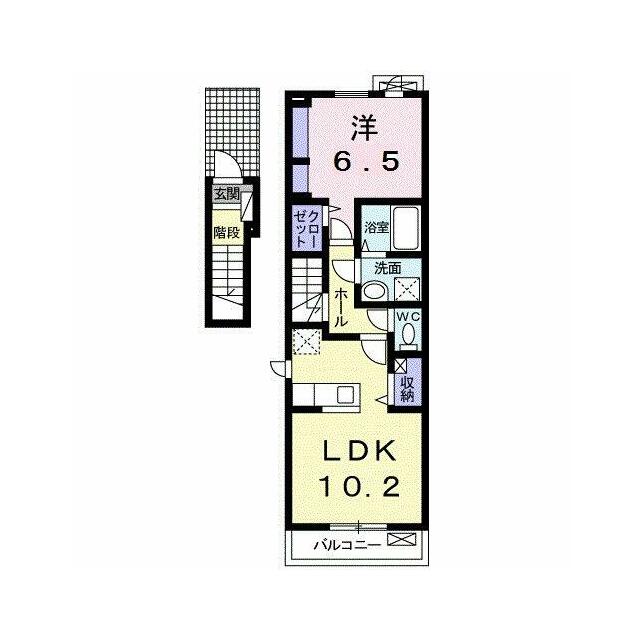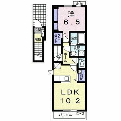| 間取り | 1LDK(洋6.5、LDK10.2) | 主要採光面 | 東 |