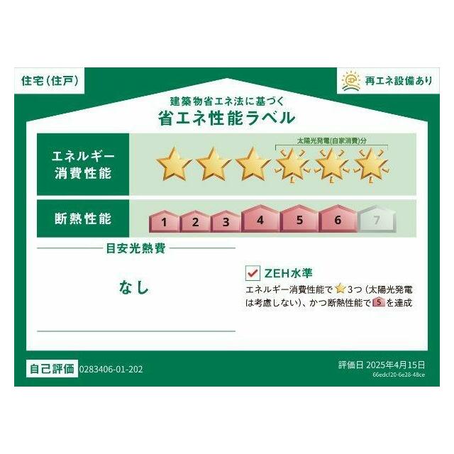 | エネルギー消費性能 | ★★★(削減率20%達成) | 断熱性能 | 6段階/7段階中 |