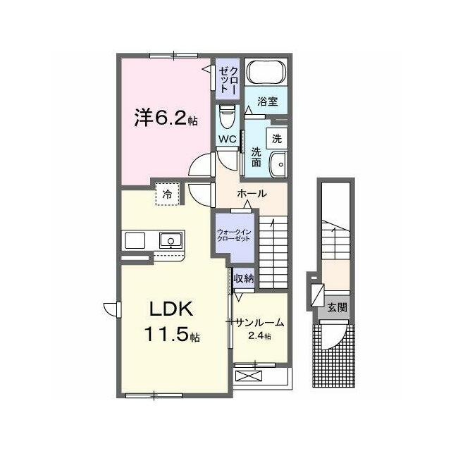 | 間取り | 1LDK(洋6.2、LDK11.5) | 主要採光面 | 南 |