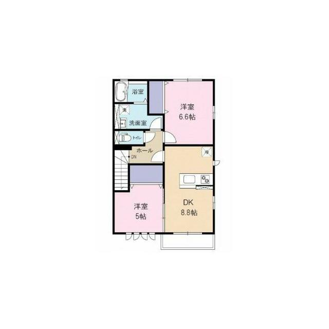 | 間取り | 2DK(DK8.8、洋5、洋6.6) | 主要採光面 | 南 |