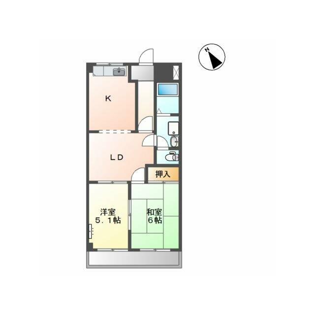 | 間取り | 2LDK(LDK10.3、和6、洋5.1) | 主要採光面 | 南 |