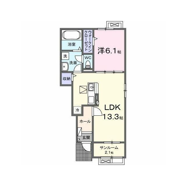 | 間取り | 1LDK(洋6.1、LDK13.3) | 主要採光面 | 南西 |