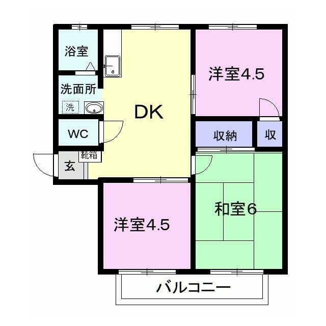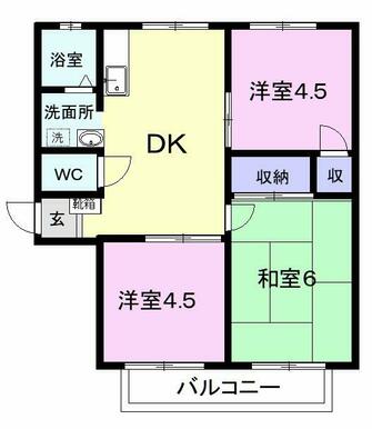 | 間取り | 3DK(DK5、洋4.5、洋4.5、和6) | 主要採光面 | 東 |
