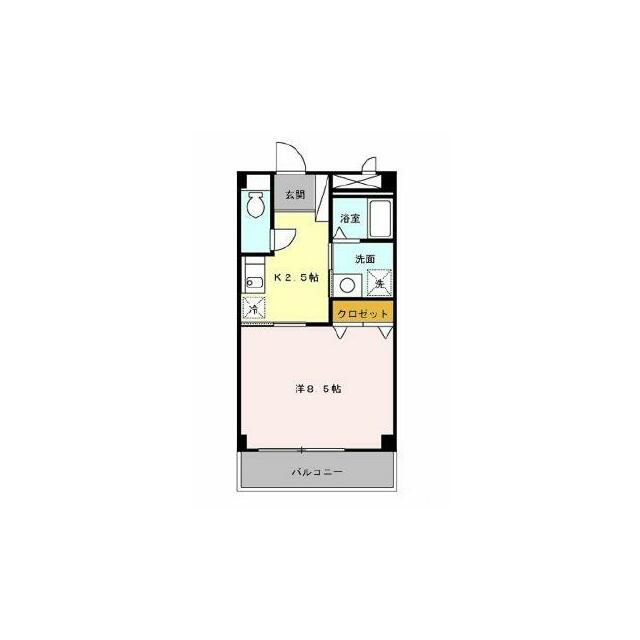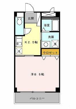 | 間取り | 1DK(洋8.5、K2.5) | 主要採光面 | 東 |
