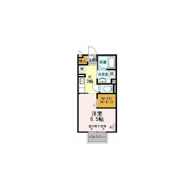| 間取り | 1K(K3、洋6.5) | 主要採光面 | 南 |