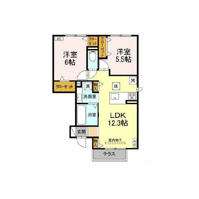 | 間取り | 2LDK(LDK12.3、洋6、洋5.5) | 主要採光面 | 南 |