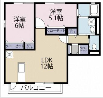 | 間取り | 2LDK(洋6、洋5.1、LDK12) | 主要採光面 | 南 |