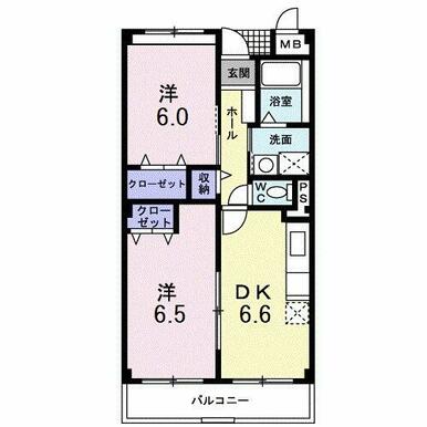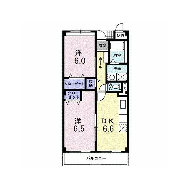 | 間取り | 2DK(洋6.5、洋6、DK6.6) | 主要採光面 | 南東 |