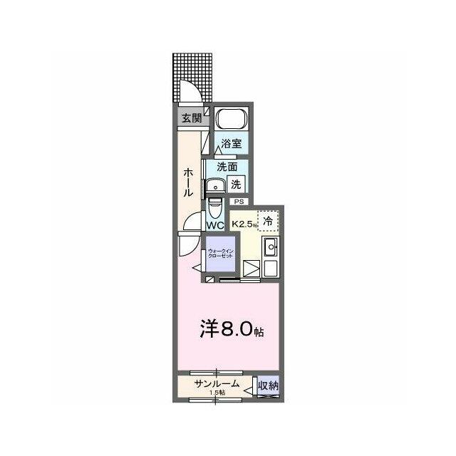 | 間取り | 1K(洋8、K2.5) | 主要採光面 | 南 |