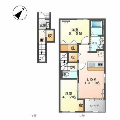 | 間取り | 2LDK(LDK10.1、洋4.2、洋5.5) | 主要採光面 | 南東 |